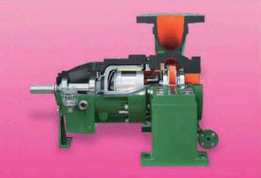 Bơm vỏ xoắn ốc – Kiểu thiết kế dầu nóng NMWR với khớp nối từ kín, lắp trên đường tâm. |